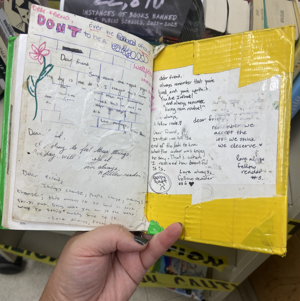 Teenage readers left encouraging messages for each other in the pages of “The Perks of Being a Wallflower.”